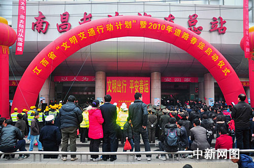 中新網南昌1月29日電(記者 段長征)1月29日,江西省“文明交通行動”及暨道路春運啟動儀式在南昌長途汽車站舉行。這標志著江西省“文明交通行動計劃”與2010年道路春運正式拉開帷幕。江西省副省長洪禮和及省文明辦、省公安廳、省交通廳、省交警總隊等部門領導出席了現場啟動儀式。