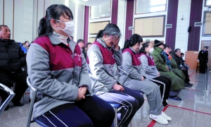 昨日上午,法庭內(nèi)的旁聽席上坐了50余名旁聽者,據(jù)了解,其中多為被告人家屬。上午10時5分,31名被告人排隊進(jìn)入法庭。