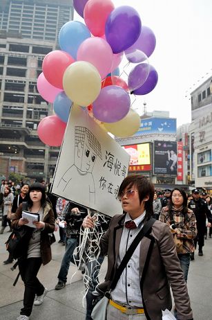 8日下午,成都春熙路中山廣場,一名戴著墨鏡,中性打扮的女子,一手拿著氣球,一手高舉木牌“海悅哥,你在哪里?”引得路人圍觀,圍觀的人一頭霧水,并針對“海悅哥”的身份展開了豐富的猜測。想炒作自己吧?該女子酷似李宇春,中性打扮,臉型相同,就是個子比李宇春矮,可能會因為有一張明星臉而走紅呢!到了待嫁的年齡想給自己相親吧?……