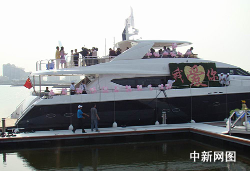中新網海口3月20日電(付美斌)“從這一刻起,我將始終與你為伴,將我的一生交付與你,共同分享、共同承擔所有的未來……”3月20日下午3時許,一對“新人”在海口灣畔一艘價值6000萬元的公主級豪華游艇上舉行浪漫婚禮。據悉,這是游艇婚禮首現海南島,該場婚禮花費25999元。