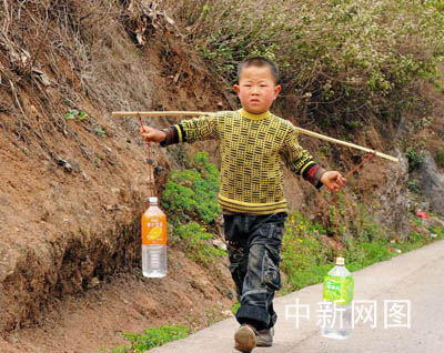 中新網興義3月29日電 (曹多然 章瑩)黔西南旱情目前仍在持續(xù)。3月29日,記者此間在貴州旱區(qū)走訪中發(fā)現,當地村民全民動員,通過找水、買水等方式積極開展自救,取水路上不時可見稚齡“小水童”的身影。貴州興義市白碗窯鎮(zhèn)柳樹坪村8歲的劉凱就是其中的一員。