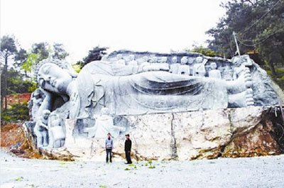 近日,一尊長33米、高11.5米的青石臥佛在長樂市潭頭鎮邊蘭村錦鋰巖建成。這尊巨型臥佛就地取材,由一塊天然整體青石巖現場雕刻而成,在大臥佛旁邊,還有12尊高2.8米的小佛像。這尊臥佛2007年初開始雕刻,歷經3年,由惠安崇武著名雕刻大師和雕刻高手設計,20多人雕刻而成。