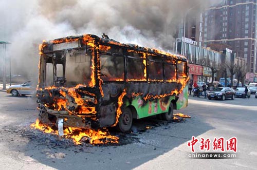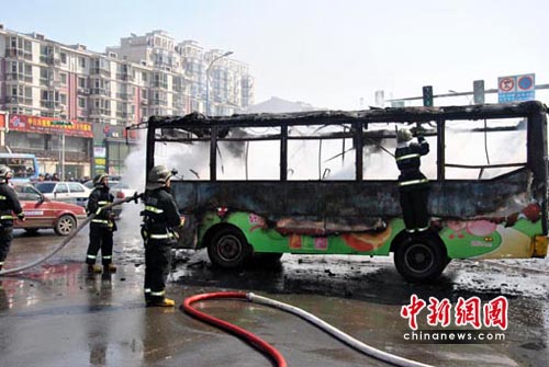 事發(fā)時(shí)車上大約有20多名乘客,所幸全部安全逃生。消防部門接到報(bào)警后,派出兩輛消防車趕到現(xiàn)場。大約30分鐘后,大火被撲滅,但車已被燒成空架。