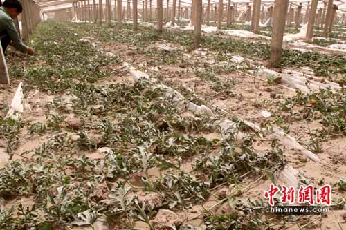 四月下旬正值吐魯番地區葡萄、哈密瓜等幼苗生長季節。新疆農業廳說,這次大風災害使全吐魯番地區春季作物遭受到“毀滅性打擊”。按照吐魯番地區葡萄年均種植面積45萬畝測算,這意味著有一半以上的葡萄種植基地受災。