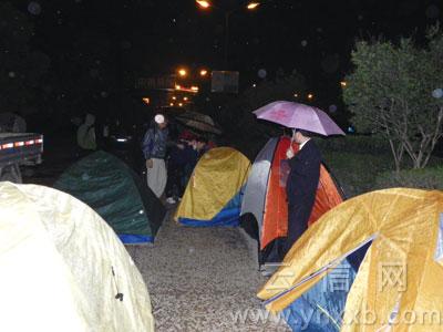 當(dāng)晚23時左右,由于雙方?jīng)]有達成一致,小區(qū)里的部分業(yè)主在小區(qū)外的馬路上“安營扎寨”。