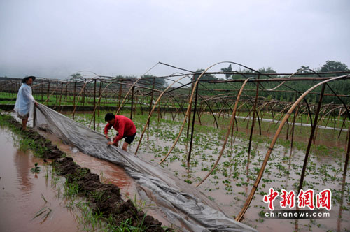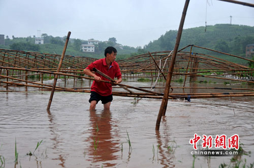 中新網重慶6月23日電(盧宗艷 銀雪)“早上還到縣城送貨,路上就接到工人電話說大棚被沖毀了,來回不到2個小時!23日,重慶綦江縣永新鎮石塔村村民何家全看著自己承包的60余畝大棚蔬菜基地瞬間變成一片汪洋大海,心疼地說不出話來。