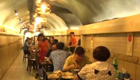 【解說】據記者了解,部分納涼點是由舊時的防空洞改造而成。重慶特殊的地理環境和歷史背景促使了這些防空洞的產生。隨著時間的推移,防空洞逐漸轉為民用,成為重慶市民避暑納涼的去處。部分防空洞經過改造,如今成為了酒窖、餐館等。炎炎夏日,不少重慶市民和外地游客都喜歡到防空洞里吃火鍋。