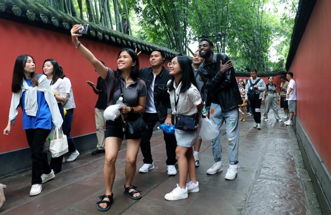 來自柬埔寨、馬來西亞、古巴、菲律賓的5位外國(guó)青年“問道青城山,拜水都江堰”,在幽幽山水中領(lǐng)略中國(guó)歷史與自然的美妙結(jié)合。