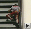 28日,著名的法國蜘蛛人阿蘭·羅伯特助繩索攀爬數小時,成功登頂828米高的世界最高建筑哈利法塔。