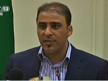 利比亞國家電視臺19日播出畫面,畫面當中顯示的是利比亞政府領導人卡扎菲會見一名官員。據利比亞政府發言人稱,這名官員本周在俄羅斯莫斯科會見了俄羅斯的官員討論了利比亞停火的可能性。