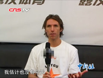 【解說詞】當日下午,正當活動進行到一半時,原本晴朗的天空突然下起大雨,預定納什做裁判的3V3斗牛比賽也被迫延時。但這絲毫未影響球迷的熱情,慕名前來一睹偶像風采的球迷將納什的休息室外堵的水泄不通。甚至部分球迷為了吸引偶像注意,還在雨中打起籃球來。