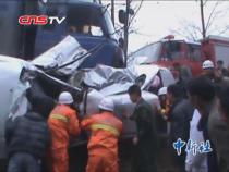 【解說】杭州消防支隊湖濱支隊在接到報警后立即出動了4輛消防車,利用37米高的云梯消防車把2名被困患者解救出來,同時,消防官兵也迅速登至4樓,利用內部墻消出兩支水槍分別控制背面和西面的火勢。