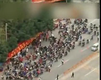 空中直擊“摩托大軍”千里返鄉(xiāng)過年