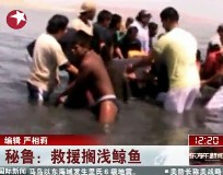 秘魯鯨魚擱淺 眾人齊心協力成功援救