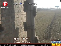 村民就地取材把磚頭綁在電線桿上自制"梯子"