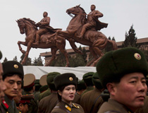 朝鮮已故領導人金日成與金正日銅像揭幕