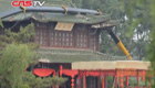 劇組吊車側翻 砸壞瘦西湖熙春臺