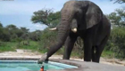 大象泳池畔喝水 嚇傻池中男子