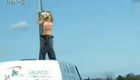 金發美女公路上車頂熱舞