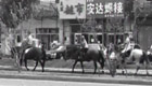 兩男一女騎馬鬧市機動車道上行走