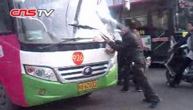 拍客:公交車刮蹭行人 街頭大鬧堵車
