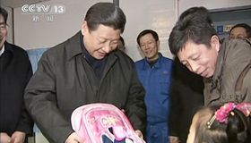 習近平看望工人 為民工子女送書包