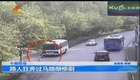 實拍路人狂奔過馬路被撞飛
