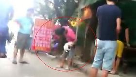 男子當眾虐打小狗 凄烈慘叫
