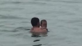 男子發現鴨子被凍湖面 跳湖破冰救援