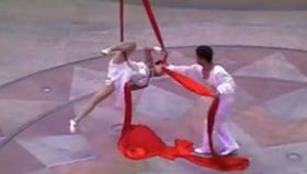 男女表演“飛天綢吊”
