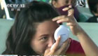 美女主持人直播球賽 被足球砸中腦袋