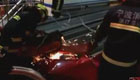 監拍:司機一腳急剎 滿車鋼條削平駕駛室