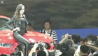 美女主持人直播球賽 被足球砸中腦袋