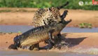 美洲虎涉水偷襲鱷魚