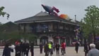 上海迪士尼小鎮首露全貌 游客冒雨漫步其中