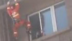 女子欲跳樓 消防員速降將其踹進屋