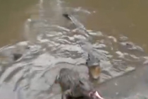 現場:竊賊被追沖入鱷魚池 被民警救回