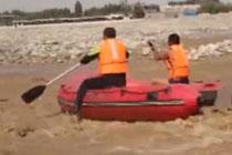 消防劃艇進洪水中救援
