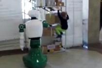 機器人扶住貨架救小孩