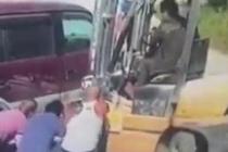 小伙開叉車救援被壓女孩