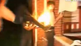 【解說】在事故現場,被堵車輛長達3公里。被追尾的一輛貨車滿載布料,另一輛貨車載滿襪子、內衣等日用百貨,兩車在漢宜高速潛江后湖收費站等待通行時,被隨后一輛載有鋼梁的貨車追尾。被撞的兩輛貨車車身輕微變形,肇事貨車車頭嚴重變形,車身起火燒毀。