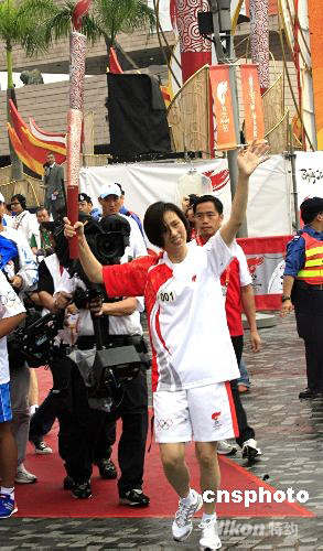 二日上午十時二十五分左右,香港首枚奧運金牌得主、退役帆板運動員李麗珊從香港特首曾蔭權手中接過“祥云”火炬,沿著紅地毯跑出香港文化中心露天廣場,北京奧運圣火在“東方之珠”香港的傳遞正式啟動……