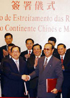 《內地與香港關于建立更緊密經貿關系的安排》及其附件分別于2003年6月29日和9月29日由中央政府和香港特區政府在香港簽署;《內地與澳門關于建立更緊密經貿關系的安排》于2003年10月17日由中央政府和澳門特區政府在澳門簽署。《安排》遵循了“一國兩制”的方針,并符合世界貿易組織的規則。