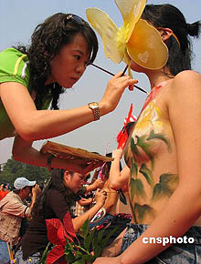 圖:南京中秋上演人體彩繪(10月6日17:20)