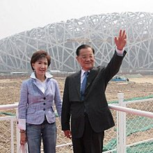 連戰(zhàn)夫婦參觀建設(shè)中的“鳥(niǎo)巢”