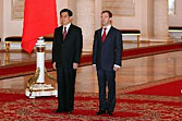 俄羅斯總統梅德韋杰夫舉行儀式歡迎胡錦濤到訪