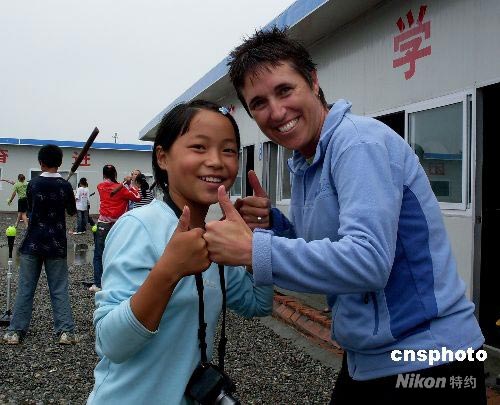 ·圖:美國職業女壘隊在綿竹鼓勵災區學生(7月16日 09:44)