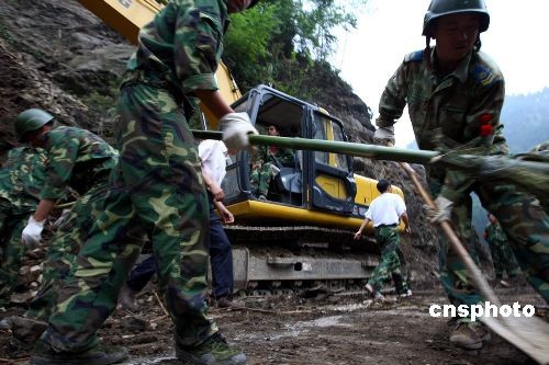 ·圖:中國空降兵幫四川震區恢復公路交通 (2)(6月9日 14:24)