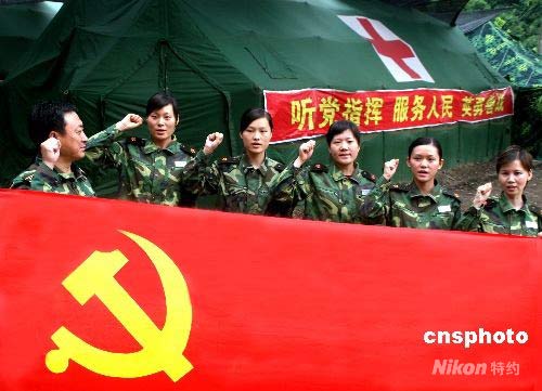 ·抗震救災中表現出色的“80后”女醫療隊員入黨(6月9日 20:28)