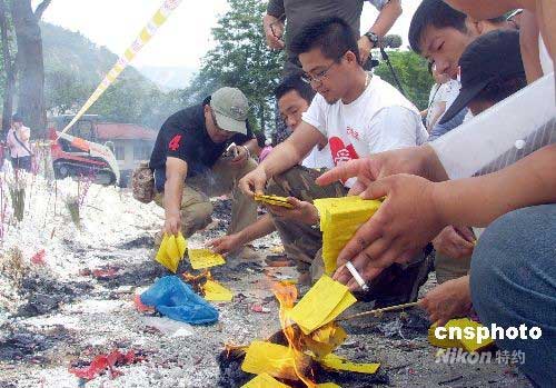 ·圖:志愿者祭奠北川中學遇難學生(6月12日 20:09)
